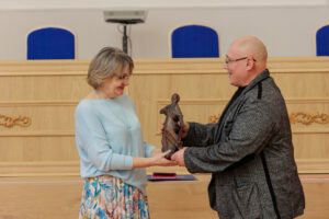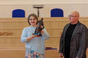 Александр Чернощеков вручил режиссёру Ольге Шульгиной макет будущего памятника. И зрители, и создатели